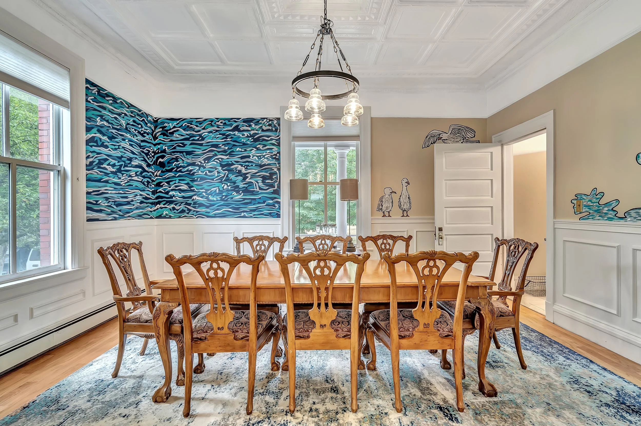 A recently renovated historic 5-bedroom home, formerly a Post Headquarters building. Enjoy the beautiful front porch, large kitchen, dining room, cozy living room, and comfortable bedrooms.